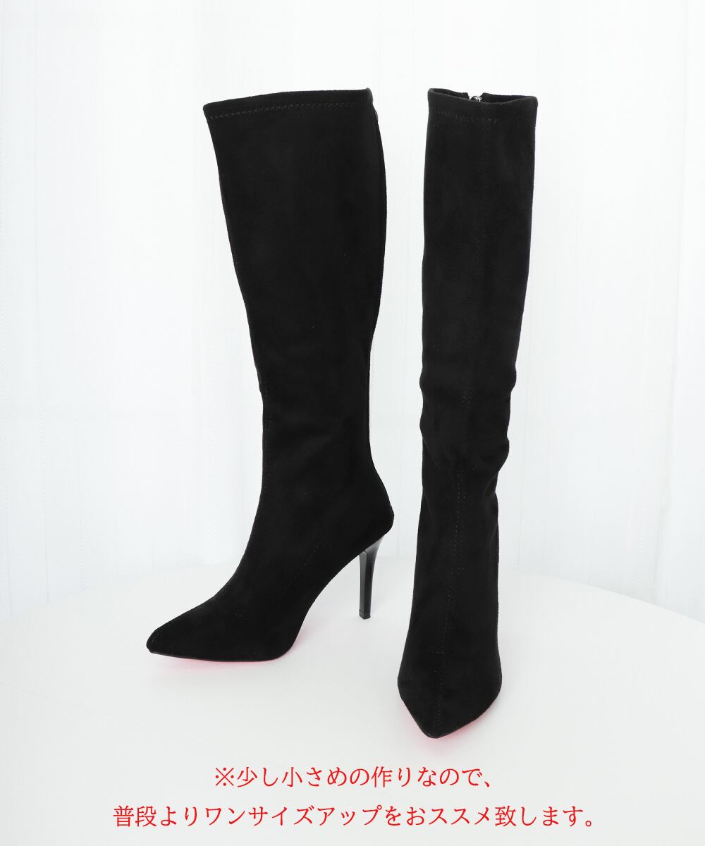 9cmハイヒール 美脚ブーツ 脚長 膝下 スエード調 大人 オルチャン きれいめ シンプル 秋冬 人気 韓国