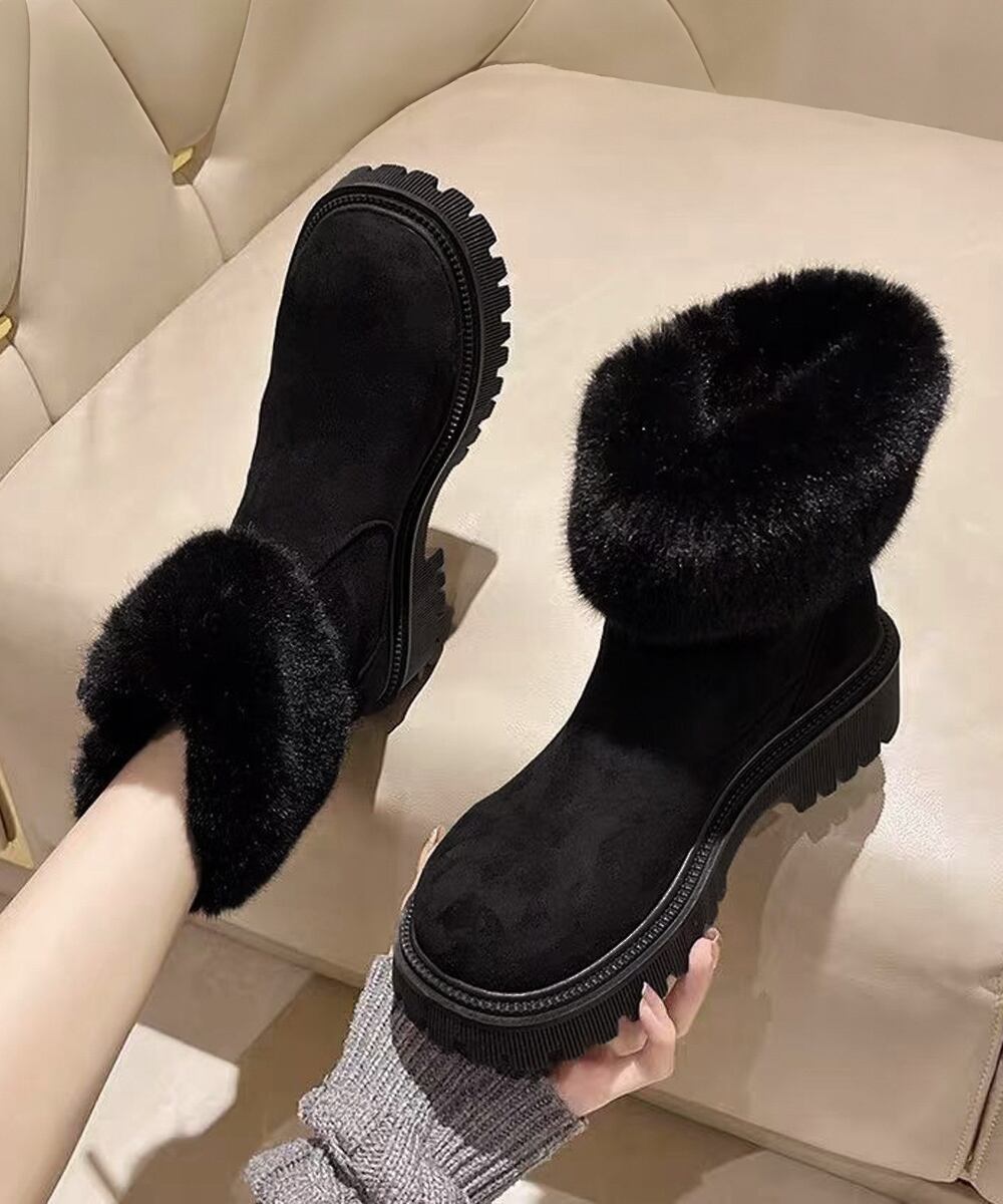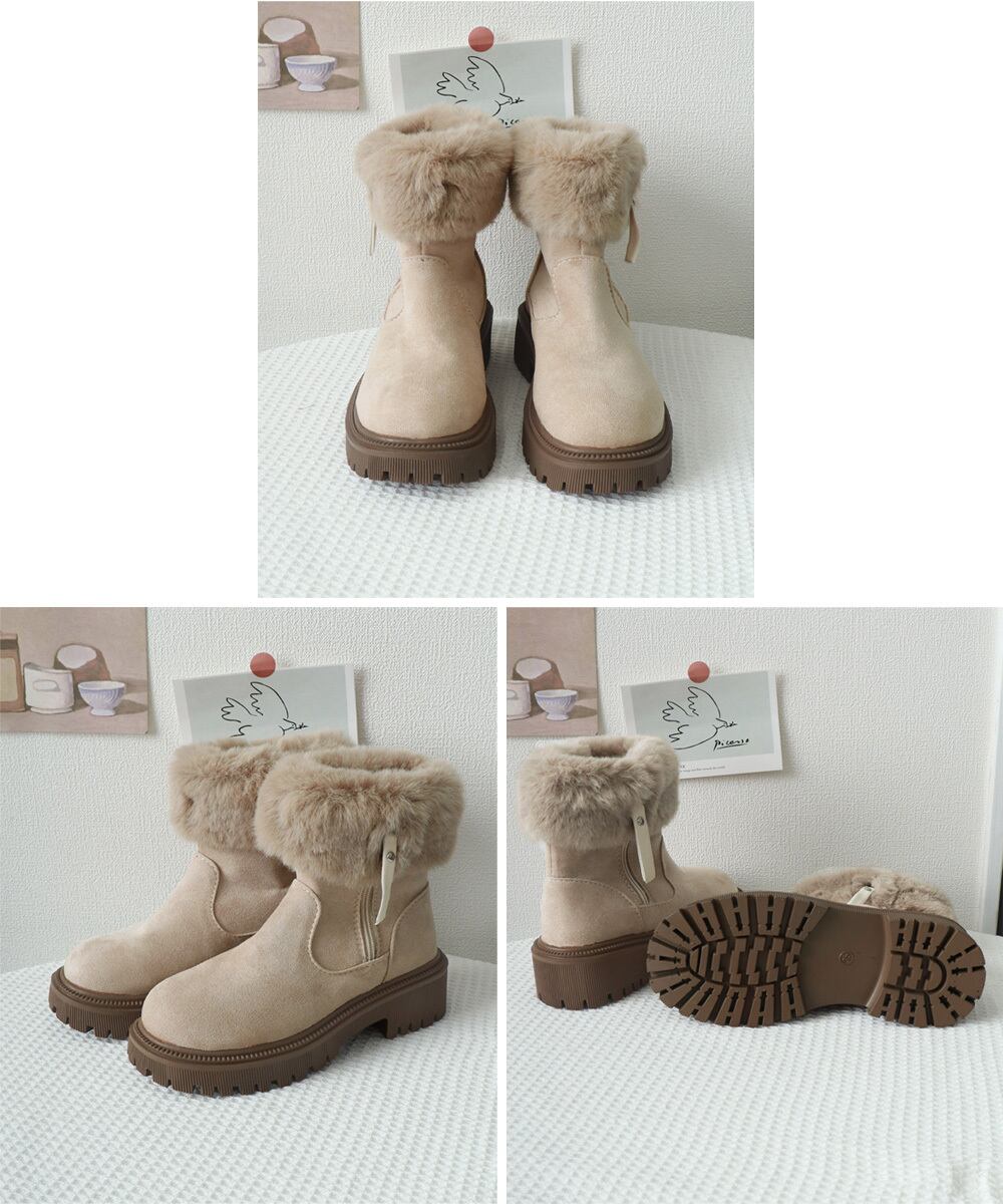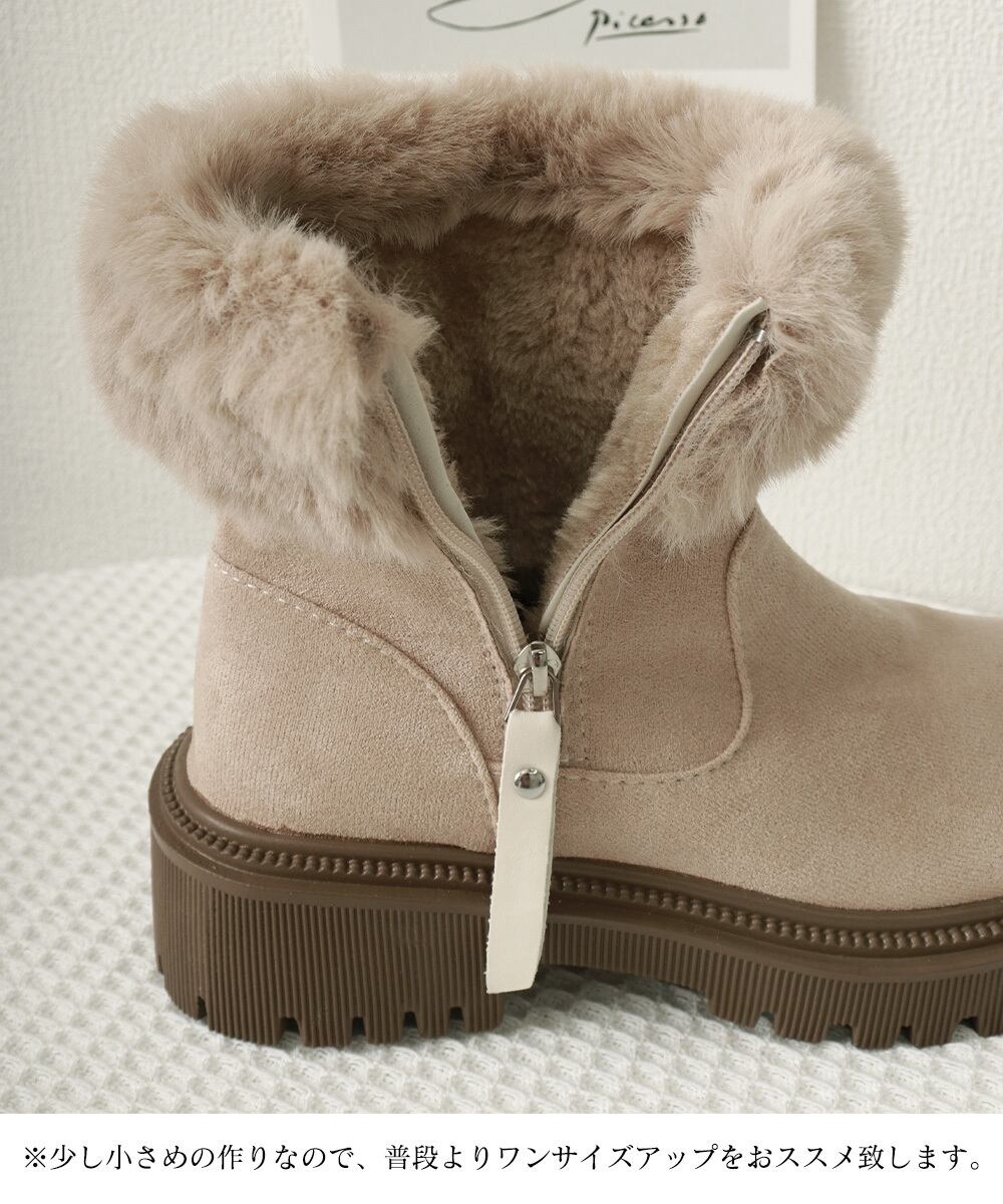 ベージュとブラックの2色展開で、ボリューム感があり暖かい厚底ショートブーツ。