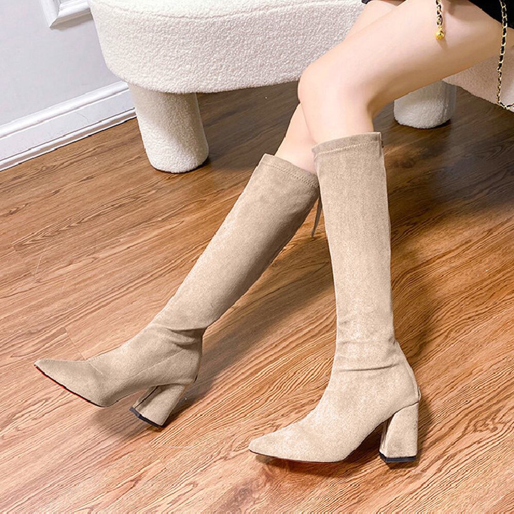 太ヒールブーツ大人 韓国靴 スエード調 ジョッキーブーツ