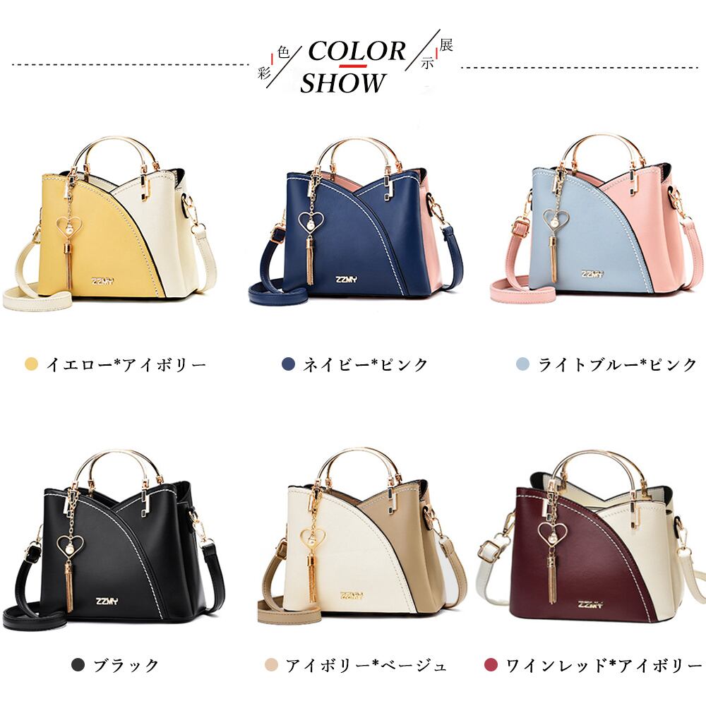 手提げバッグ結婚式 大容量バッグ多収納 合皮ショルダー配色