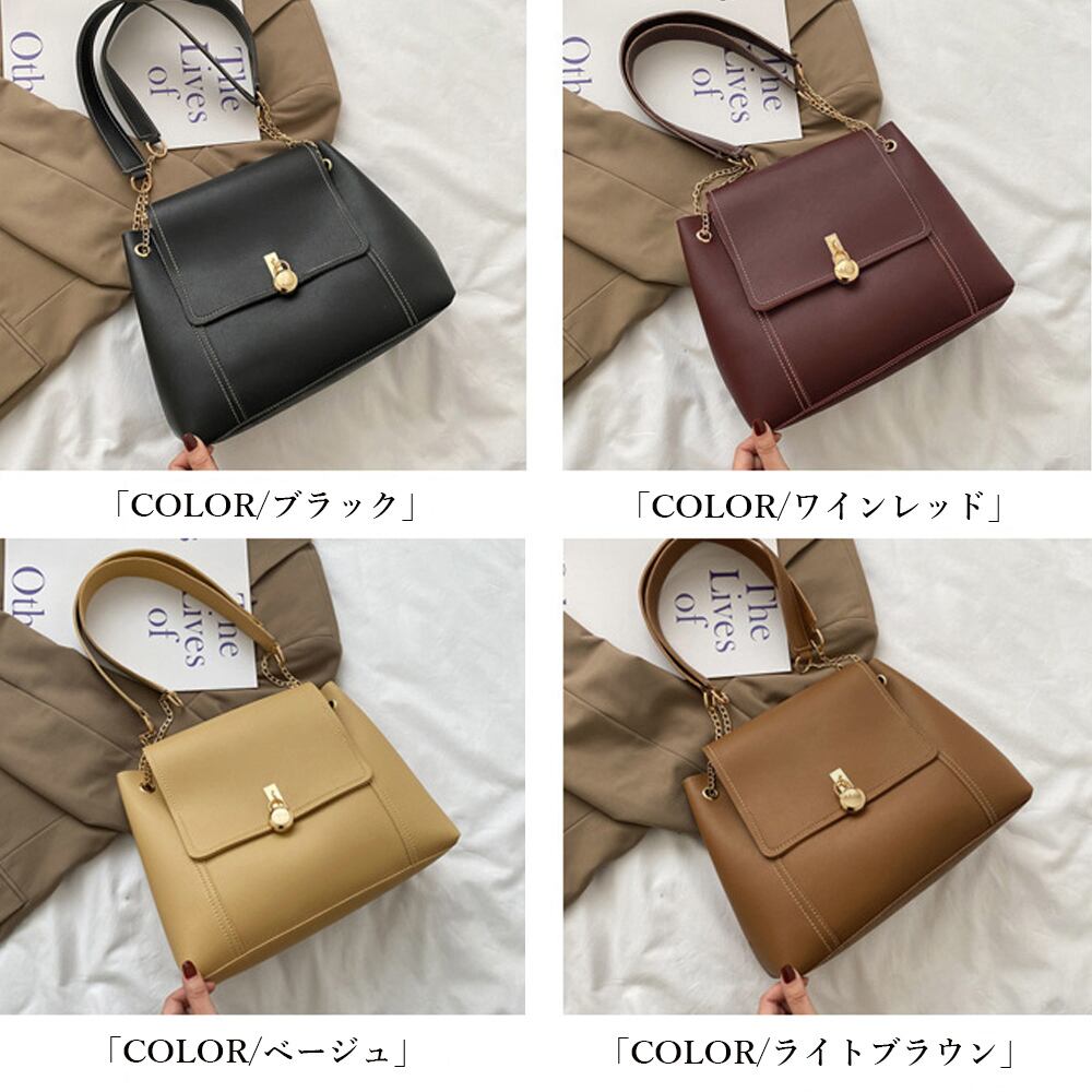 ゴールド色の丸型南京錠の金具がオトナガーリーなかぶせ式ショルダーバッグ