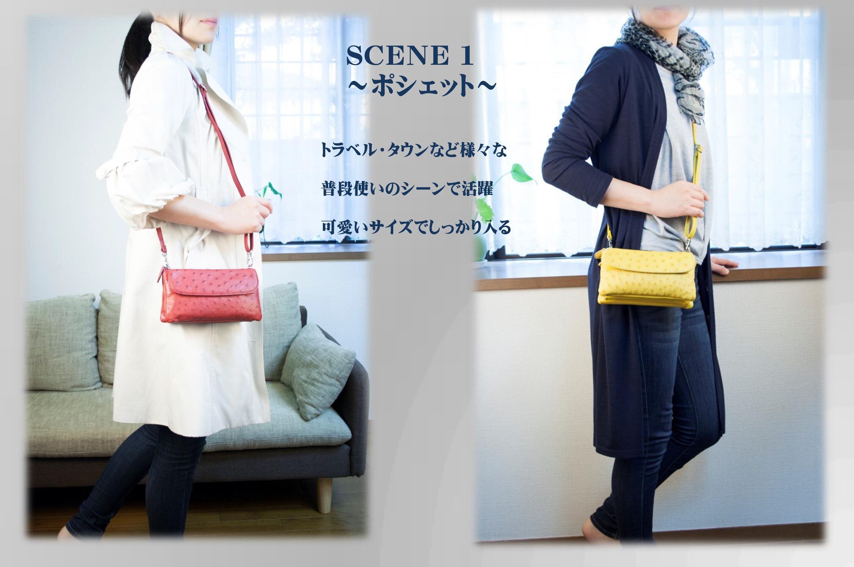 買い物の際にポシェットとして、旅先でハンドルバッグとしてなどまさに色んな場面で活躍します。