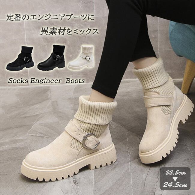定番のエンジニアブーツスタイルに異素材をミックス ソックスエンジニアブーツ