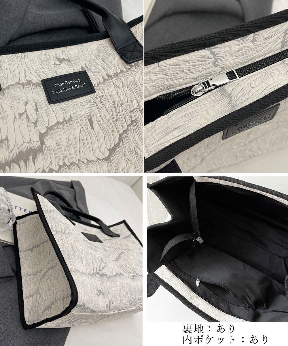 ジャガード スクエアトート おしゃれ A4大容量かばん 通勤通学 オフィスカジュアル鞄韓国風 手提げバッグ 肩掛けカバン